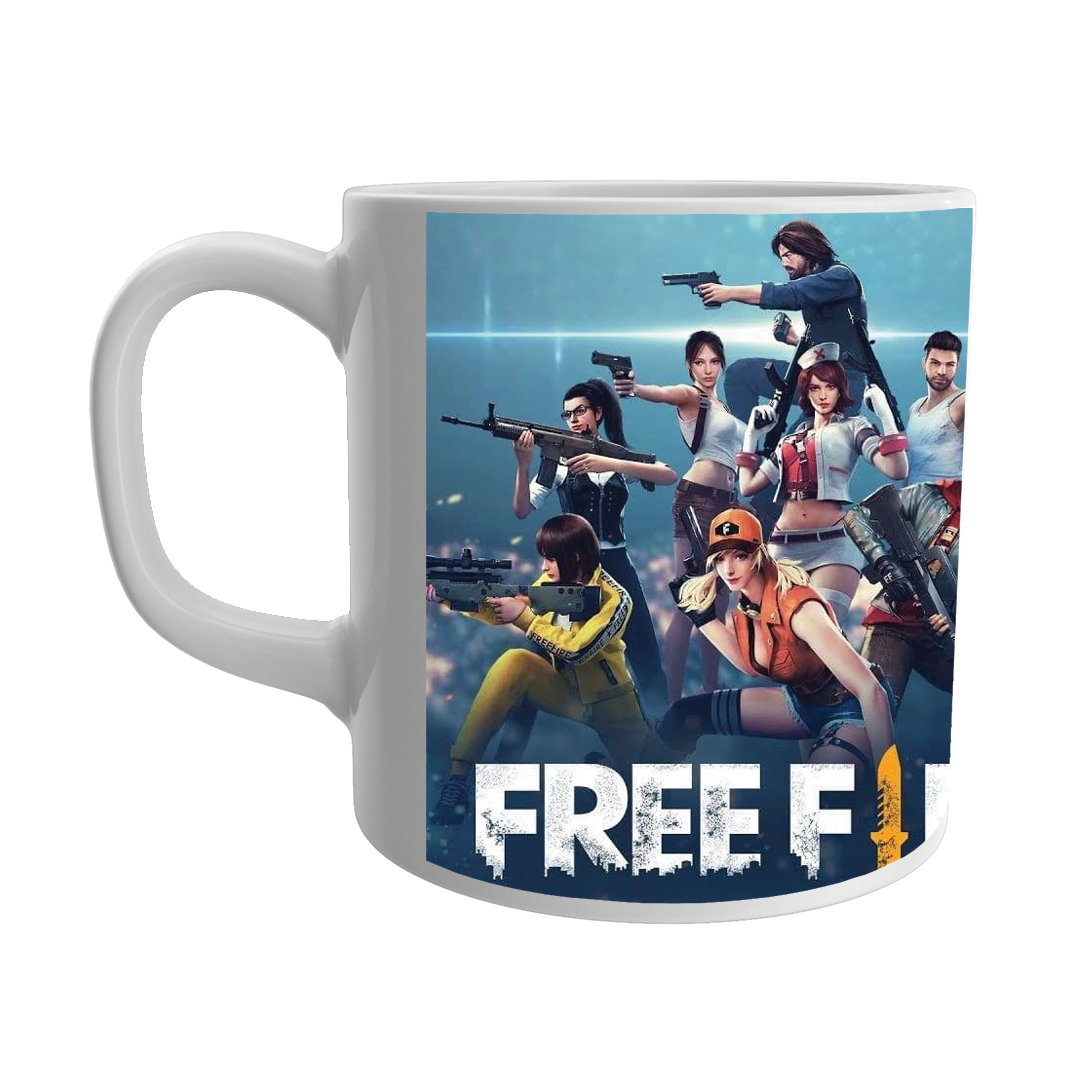Product Guruji Free fire Cartoon Print White Ceramic Coffee/Tea Mug for Kids..